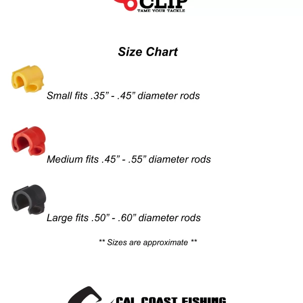 El Cali Clip es el sujetador mas confiable y seguro para el arreglo Drop Shot en el mercado. Solo colócalo en tu caña, desliza tu línea sobre el Clip y tu plomo del Drop Shot estará seguro hasta que lo vuelvas a usar, así de simple!. El Cali Clip también cuenta con un fuerte sujetador de anzuelo (Hook Keeper) para asegurar tus Jigs, arreglos Texas y una infinidad mas de arreglos y señuelos. Es muy importante seleccionar el tamaño de clip adecuado para el diámetro de tu caña, el clip debe entrar ajustado a tu caña para evitar que se deslice o se gire sobre tu caña.